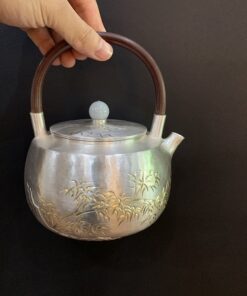 Đặt mua Ấm đun nước pha trà bạc nguyên chất 999 dạng tetsubin khắc trúc AN82