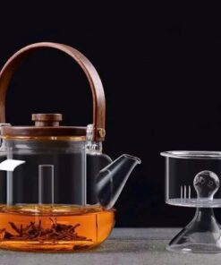 Đặt mua Ấm đun nước thủy tinh quai gỗ có lõi lọc để pha trà 800ml cao cấp ATT05