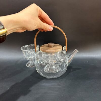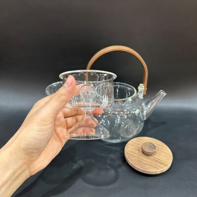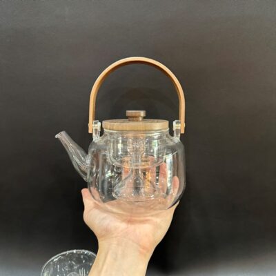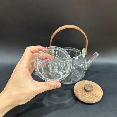 Ấm đun nước thủy tinh quai gỗ có lõi lọc để pha trà 800ml đẹp ATT05.
