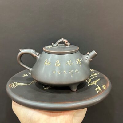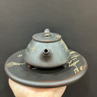 Ấm kiến thủy nê hưng dáng thạch biều tam túc hoạ trúc 240ml AKC267