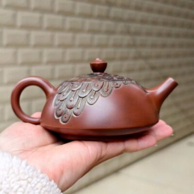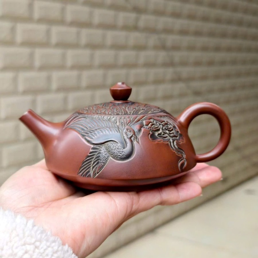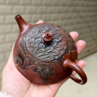 Ấm Nê Hưng Bán Nguyệt Đỏ Khắc Công 230ml AKC258