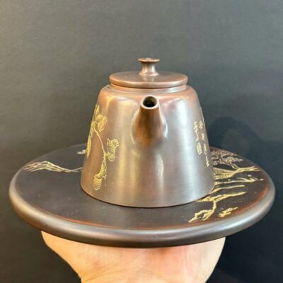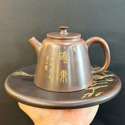 Ấm tử sa tiêu anh khắc trúc nguyên khoáng đất cũ thủ công 300ml ATS508