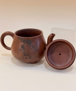 Đặt mua Ấm nê hưng dáng cung đăng nghệ nhân khắc cá chép vượt vũ môn 250ml AKC312