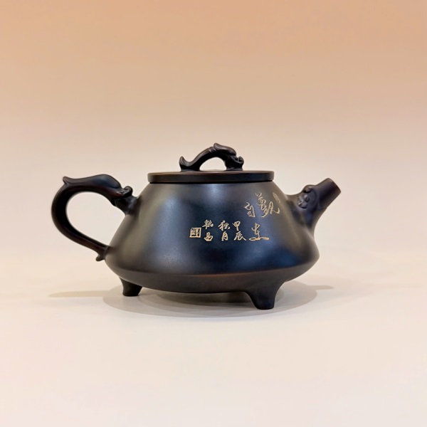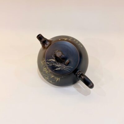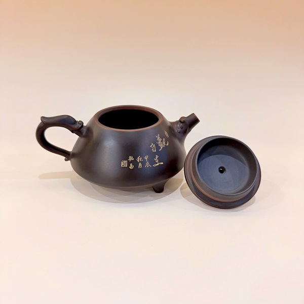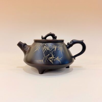 Ấm nê hưng dáng thạch biều tam túc nghệ nhân hoạ trúc khắc kim 240ml AKC267