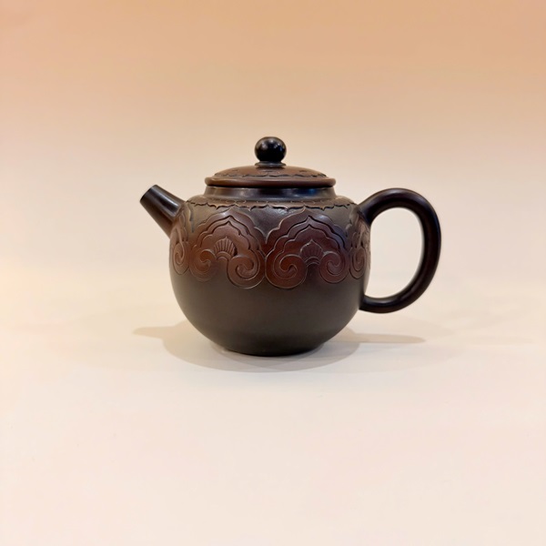 Ấm nê hưng dáng viên châu nghệ nhân khắc mây như ý 230ml AKC324