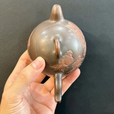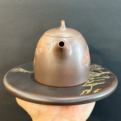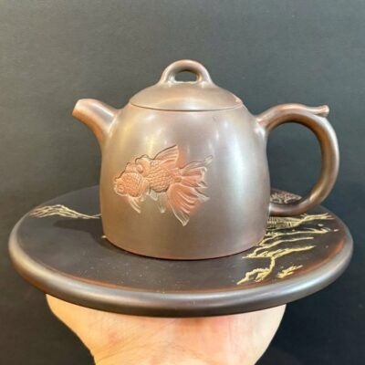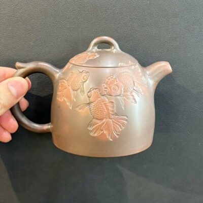 Ấm tử sa cổ cung đình đời Thanh đắp nổi cá vàng đẹp 500ml ATS604