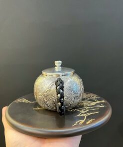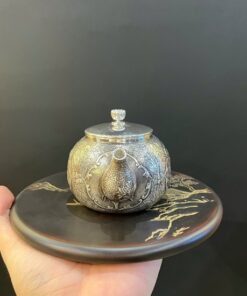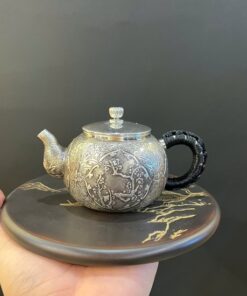 Đặt mua Ấm Pha Trà Bạc 99,9 Nguyên Chất Gò Thủ Công Tứ Quý- Mai Lan Cúc Trúc AB96