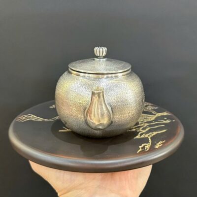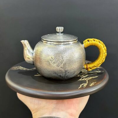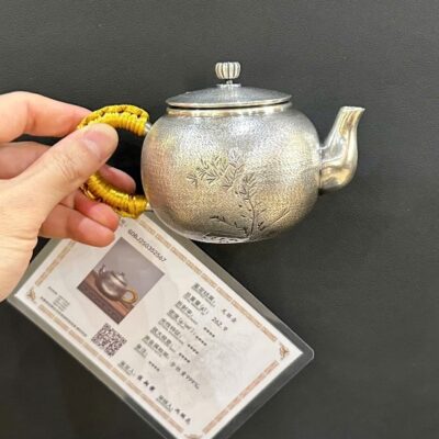 Đặt mua Ấm pha trà bạc nguyên chất 999 gò tay thủ công khắc trúc 260g 240ml AB89