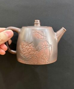Ấm pha trà cao cấp gốm nê hưng hỏa biến dáng đức trung khắc sen đẹp 280ml AKC284