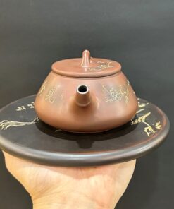 Đặt mua Ấm pha trà cao cấp thạch biều khắc đào thủ công đẹp 220ml AKC57