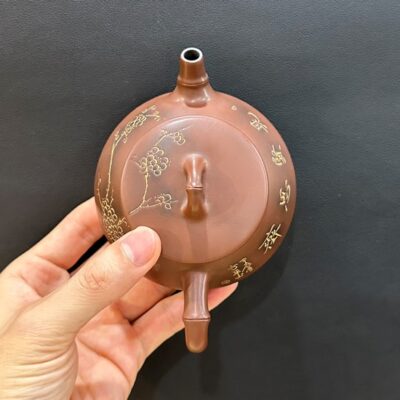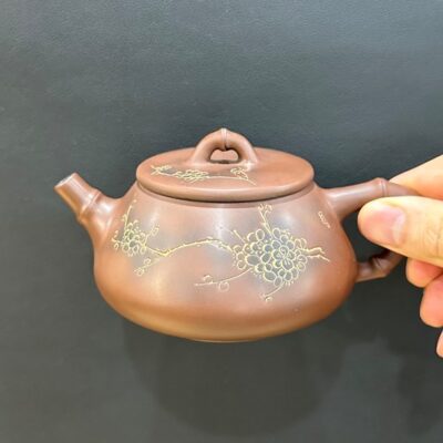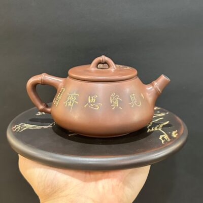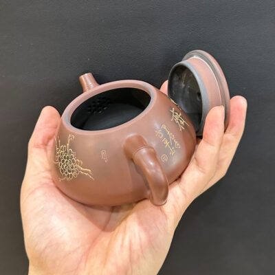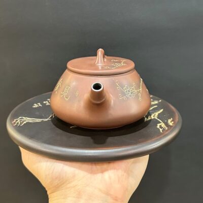 Ấm tử sa chuyết cầu hắc kim sa khắc tiểu kim đồng 240ml ATS112