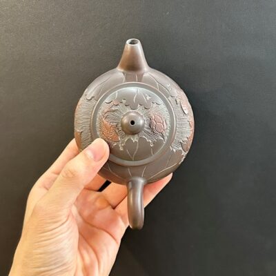 Ấm tử sa cổ cung đình đời Thanh đắp nổi cá vàng đẹp 500ml ATS604