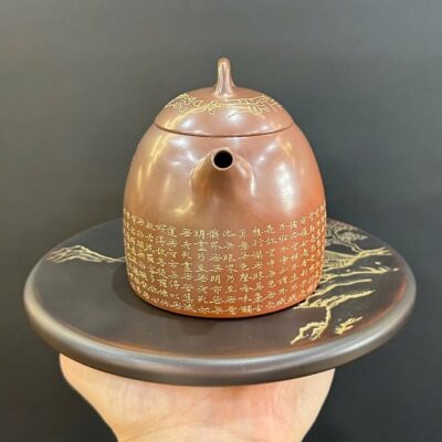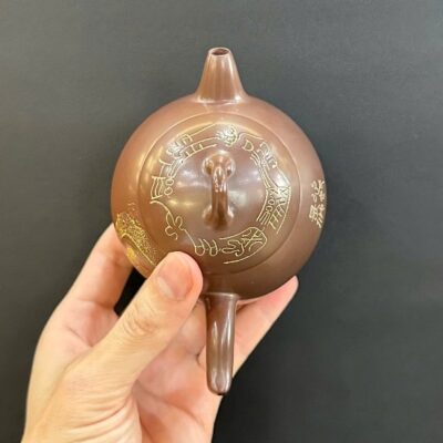 Ấm tử sa chuyết cầu hắc kim sa khắc tiểu kim đồng 240ml ATS112
