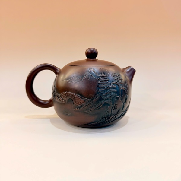 Ấm pha trà tây thi tử sa nê hưng đắp nổi sơn thủy cao cấp 300ml AKC254