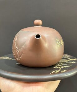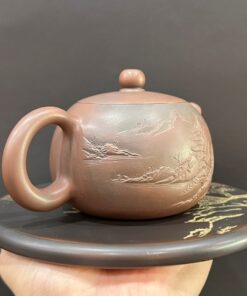 Ấm pha trà tây thi gốm tử sa nê hưng đắp nổi sơn thủy đẹp 300ml quần ẩm đông người.