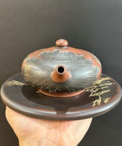 Ấm pha trà tử sa nê hưng hỏa biến dáng liên tử khắc sen cá 300ml AKC250
