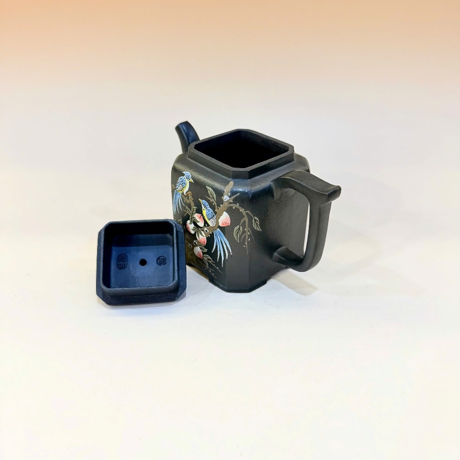 Ấm pha trà tử sa nguyên khoáng đất cũ lục nê tứ phương hoa nhỏ đẹp 130ml ATS250.
