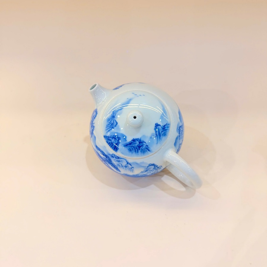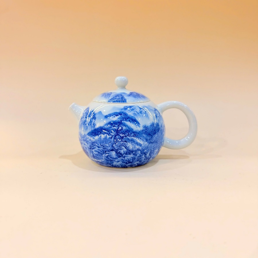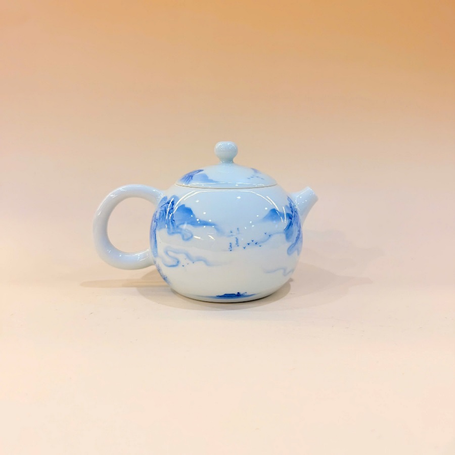 Ấm sứ cảnh đức họa sơn thủy vẽ tay thủ công dáng nhỏ đẹp pha trà đối ẩm.