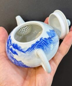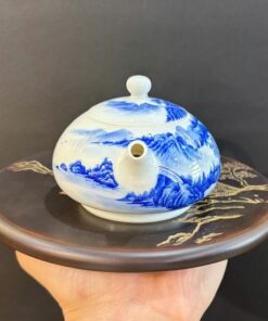 Đặt mua Ấm sứ cảnh đức men thanh hoa vẽ tay sơn thủy dáng văn đán 180ml AS43