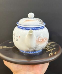 Ấm sứ cảnh đức phấn thái cao cấp vẽ tay cảnh mùa đông tuyết trắng đẹp 280ml AS80