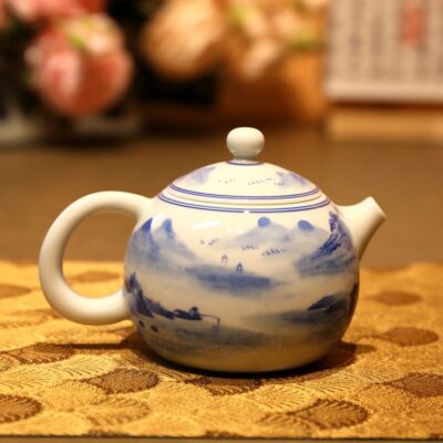 Đặt mua Ấm Sứ Cảnh Đức Tây Thi Hoạ Sơn Thuỷ Nắp Khít 230ml AS88