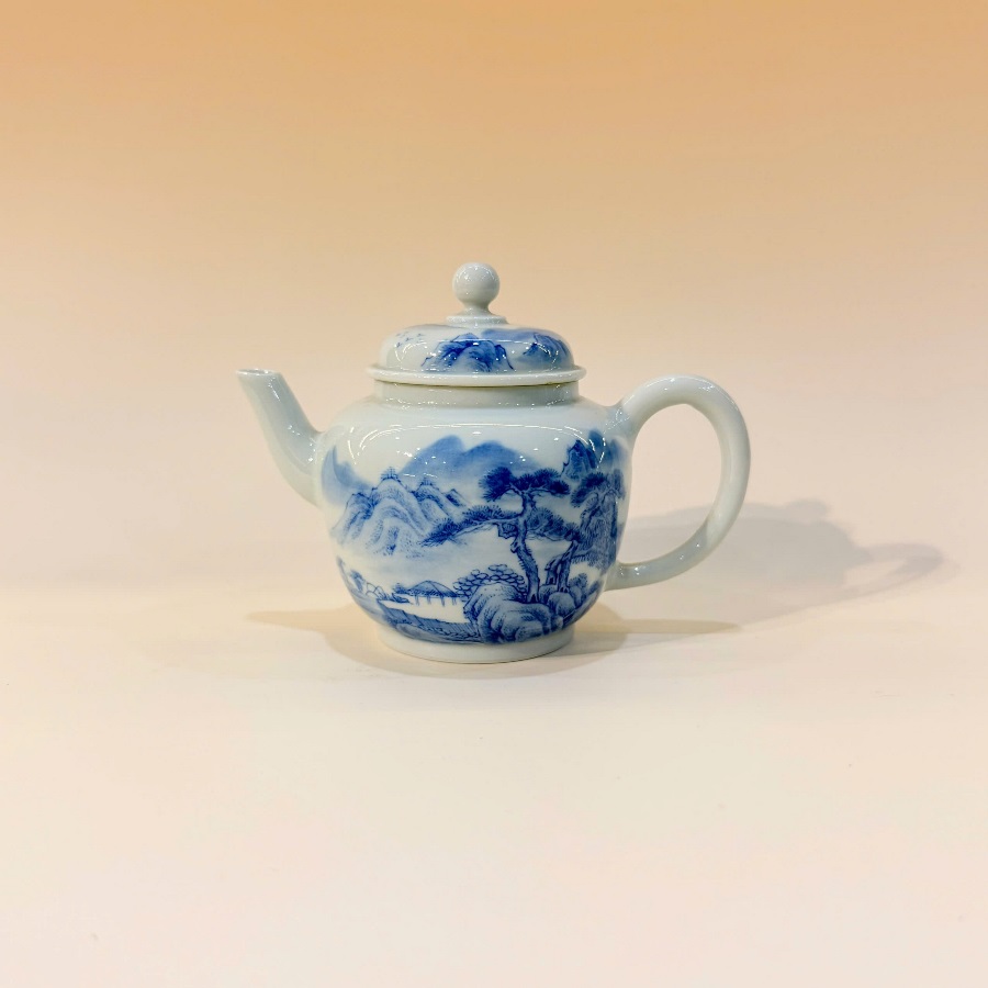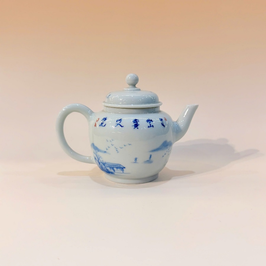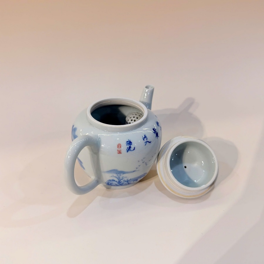 Đặt mua Ấm sứ cảnh đức vẽ tay sơn thủy men thanh hoa cao cấp AS43
