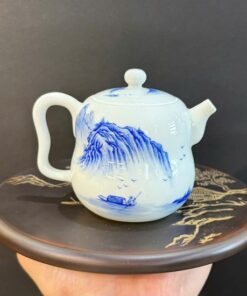 Ấm sứ cảnh đức vẽ tay sơn thủy men thanh hoa dáng hồ lô 200ml AS43