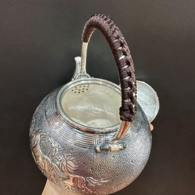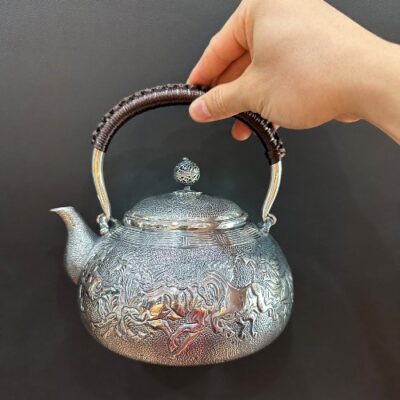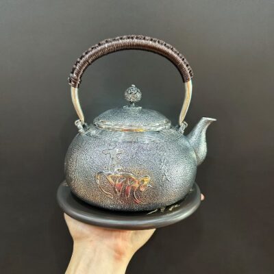 Đặt mua Ấm tetsubin bạc 999 nguyên chất gò tay thủ công bát mã 1,4L AN88