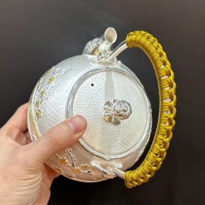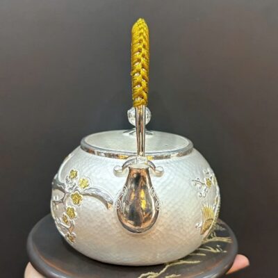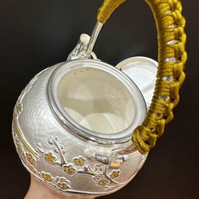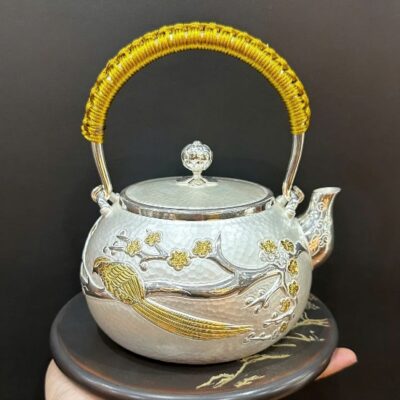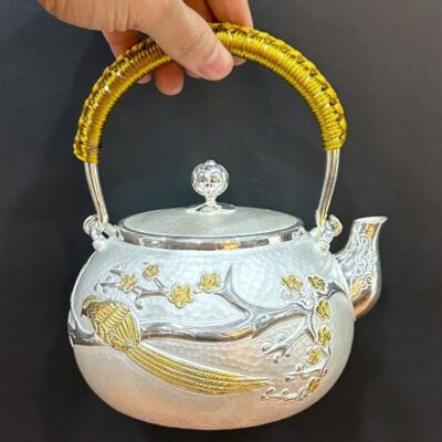 Đặt mua Ấm tetsubin bạc 999 nguyên chất gò thủ công báo xuân đun nước 1L AN90