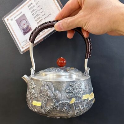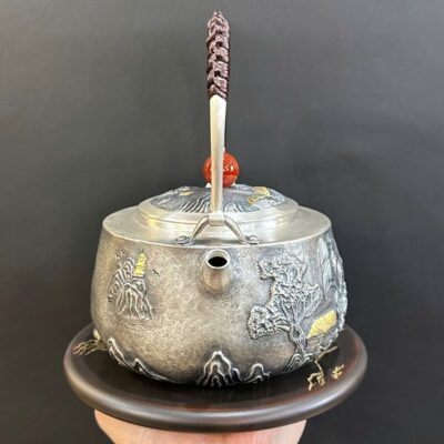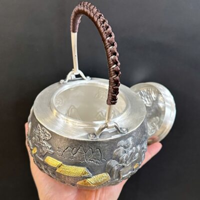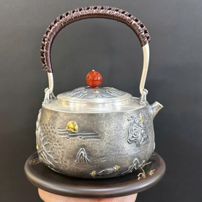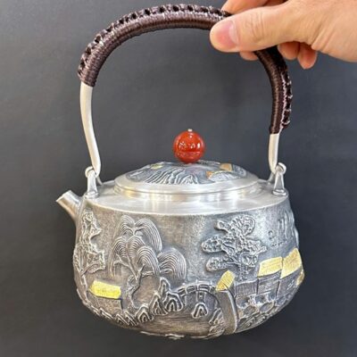 Đặt mua Ấm tetsubin bạc nguyên chất 999 đun nước pha trà gò tay đẹp 1L AN87