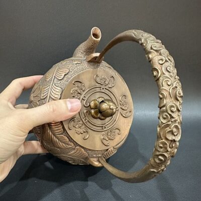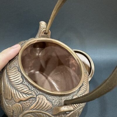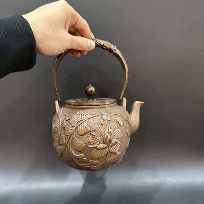 Ấm tetsubin đồng đỏ đun nước pha trà thủ công cao cấp hoa đẹp AN11