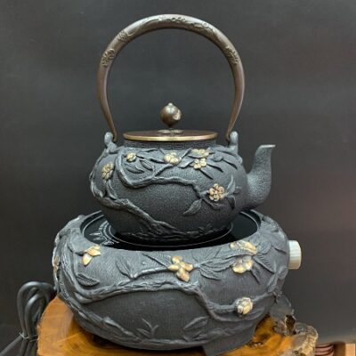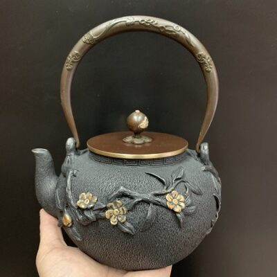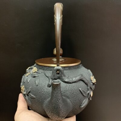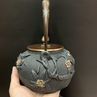 Ấm tetsubin gang cao cấp đắp nổi hoa đun nước ngon 1,2L AN04