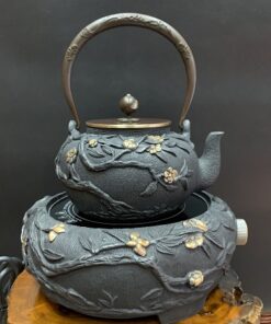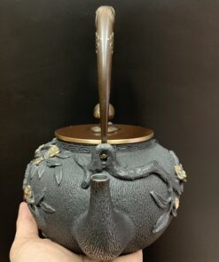 Ấm tetsubin gang cao cấp đắp nổi hoa đun nước ngon 1,2L AN04