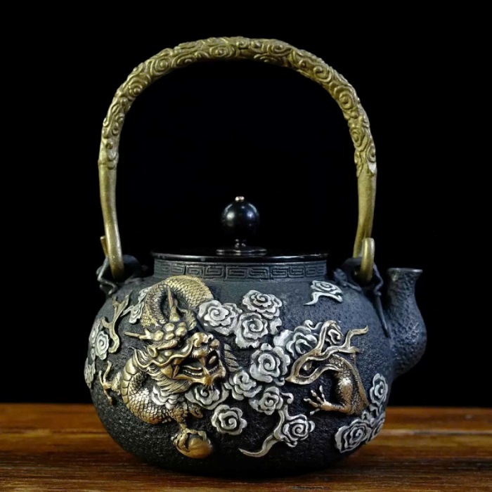 Ấm Tetsubin Gang Đắp Nổi Rồng Vàng 1,4L AN18.