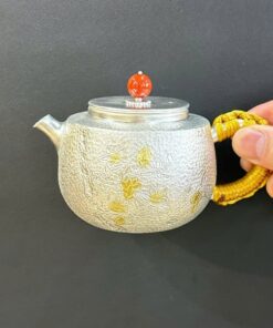 Ấm trà bạc nguyên chất 999 pha trà ngon hoa đào mai vàng 200ml 208g AB93