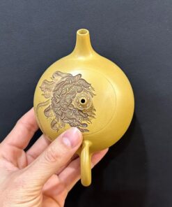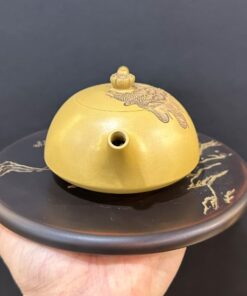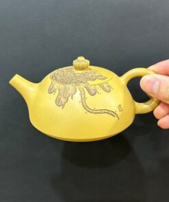 Ấm trà bán nguyệt thủ công khắc sen đẹp màu vàng thủ công 200ml AKC213