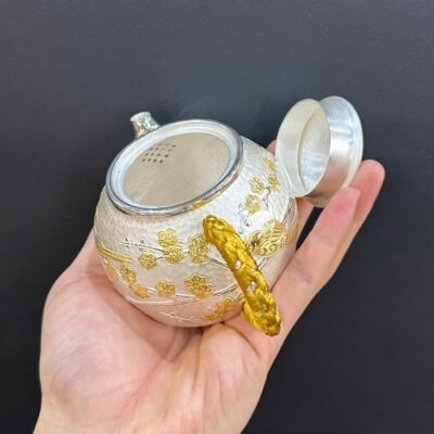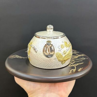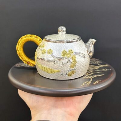 Đặt mua Ấm trà bằng bạc nguyên chất 999 gò thủ công họa tiết báo xuân 235g 220ml AB90