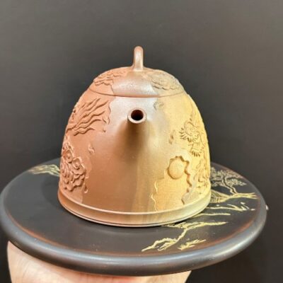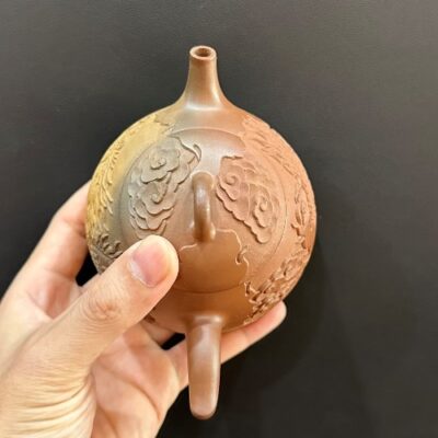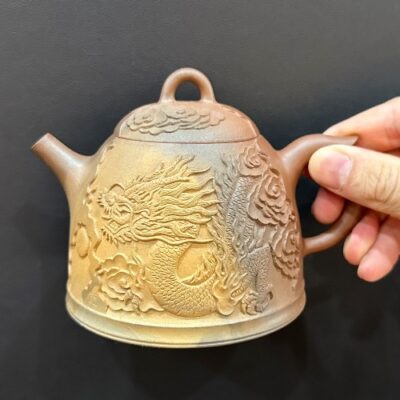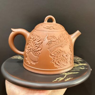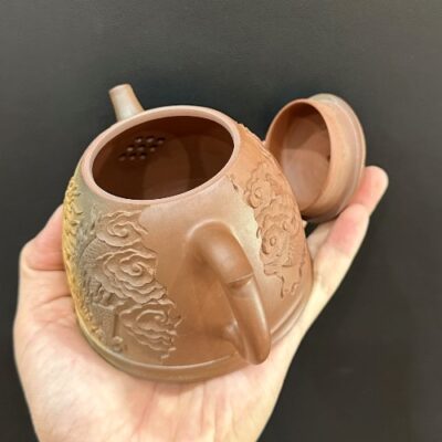 ấm trà cao cấp dáng tần quyền khắc rồng nhả ngọc nổi gốm nê hưng hoả biến cực đỉnh 350ml.
