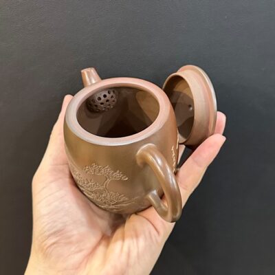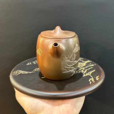 Ấm trà cao cấp tử sa nê hưng hỏa biến thủ công khắc sơn thủy 240ml AKC73