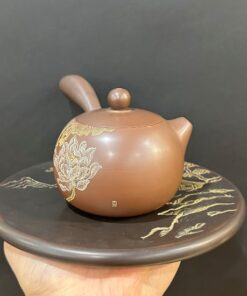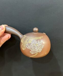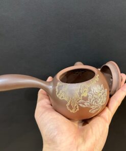 Ấm trà cao cấp tử sa nê hưng đường vũ hỏa biến nâu khắc mẫu đơn 240ml AKC35