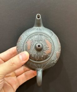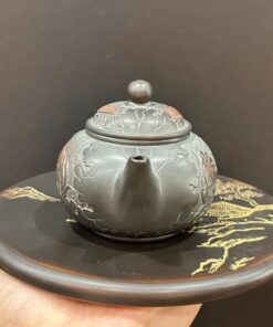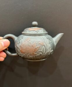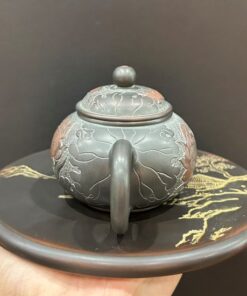 Ấm trà hắc sa nê hưng dáng thủy bình thủ công khắc sen cá 180ml pha trà ngon.
