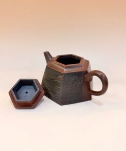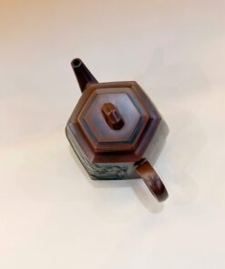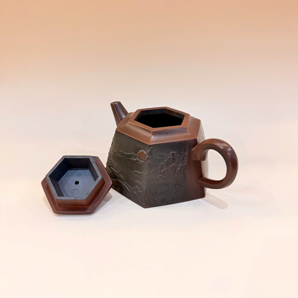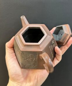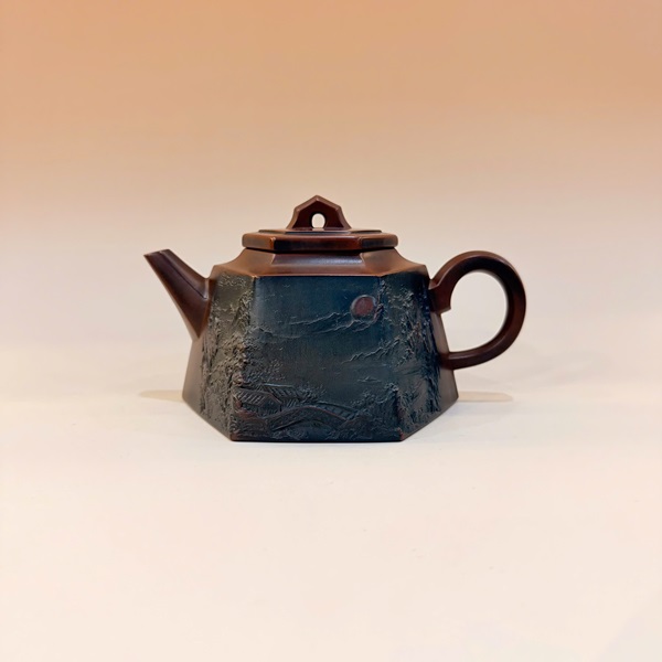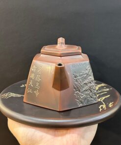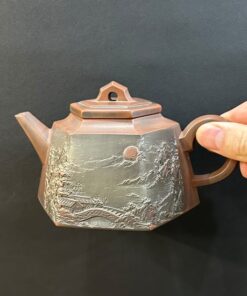 Ấm trà hoả biến cao cấp dáng lục phương khắc sơn thuỷ đẹp 350ml AKC80