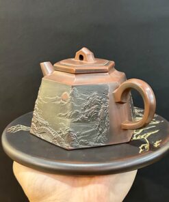 Đặt mua Ấm trà hoả biến cao cấp dáng lục phương khắc sơn thuỷ đẹp 350ml AKC80