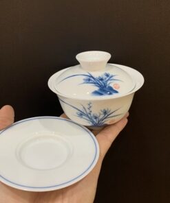 Đặt mua Ấm trà sứ cảnh đức vẽ tay hoa lan dáng chén khải 150ml đẹp AS07