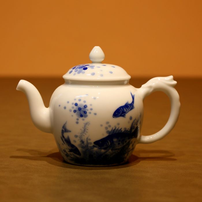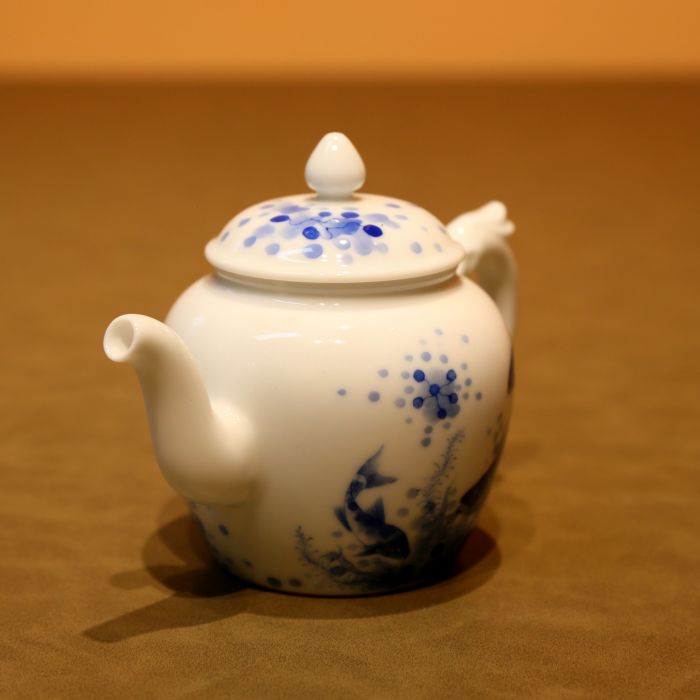 Ấm Trà Sứ Cảnh Đức Thanh Hoa Vẽ Tay Ngũ Ngư Đồ AS124