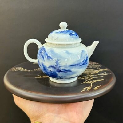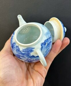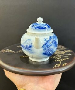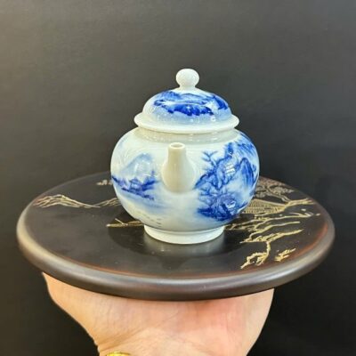 Ấm trà sứ cảnh đức thanh hoa vẽ tay sơn thủy đẹp dáng thủy bình nhỏ 150ml AS43