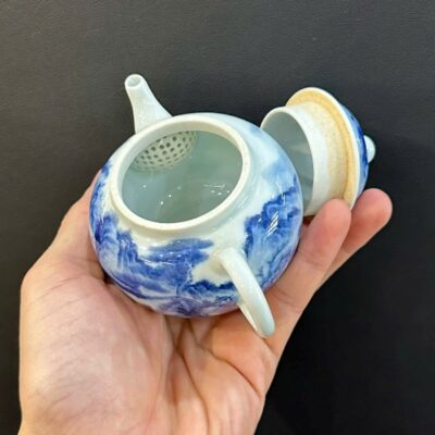 Đặt mua Ấm trà sứ cảnh đức thanh hoa vẽ tay sơn thủy đẹp dáng thủy bình nhỏ 150ml AS43