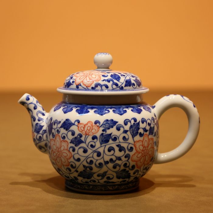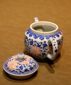 Ấm Trà Sứ Cảnh Đức Vẽ Tay Hoa Phỏng Cổ Xanh 300ml AS65