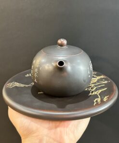 Đặt mua Ấm trà tử sa nê hưng hỏa biến dáng tây thi khắc lá đề đẹp 210ml AKC83