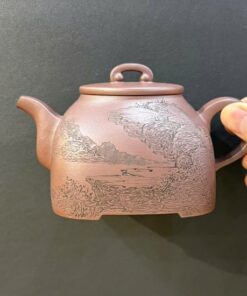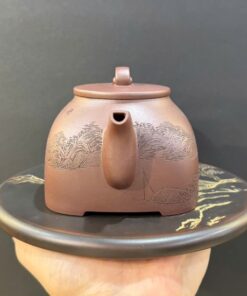 Ấm trà tử sa cao cấp nguyên khoáng đất cũ dáng tứ phương sơn thủy 300ml ATS262